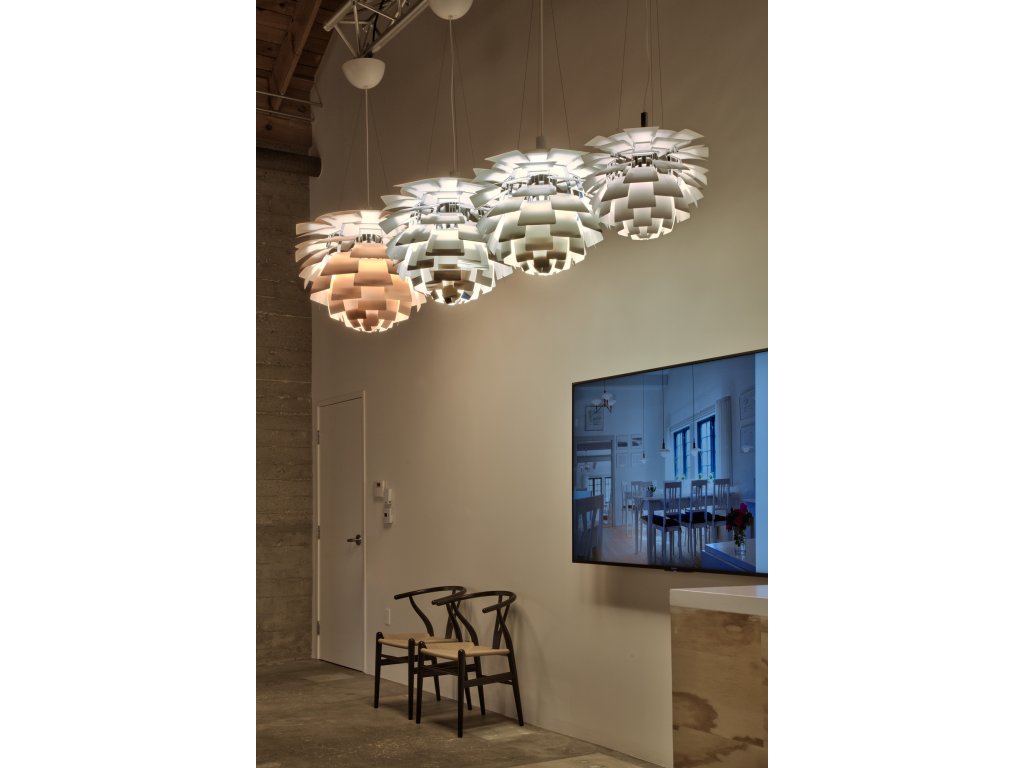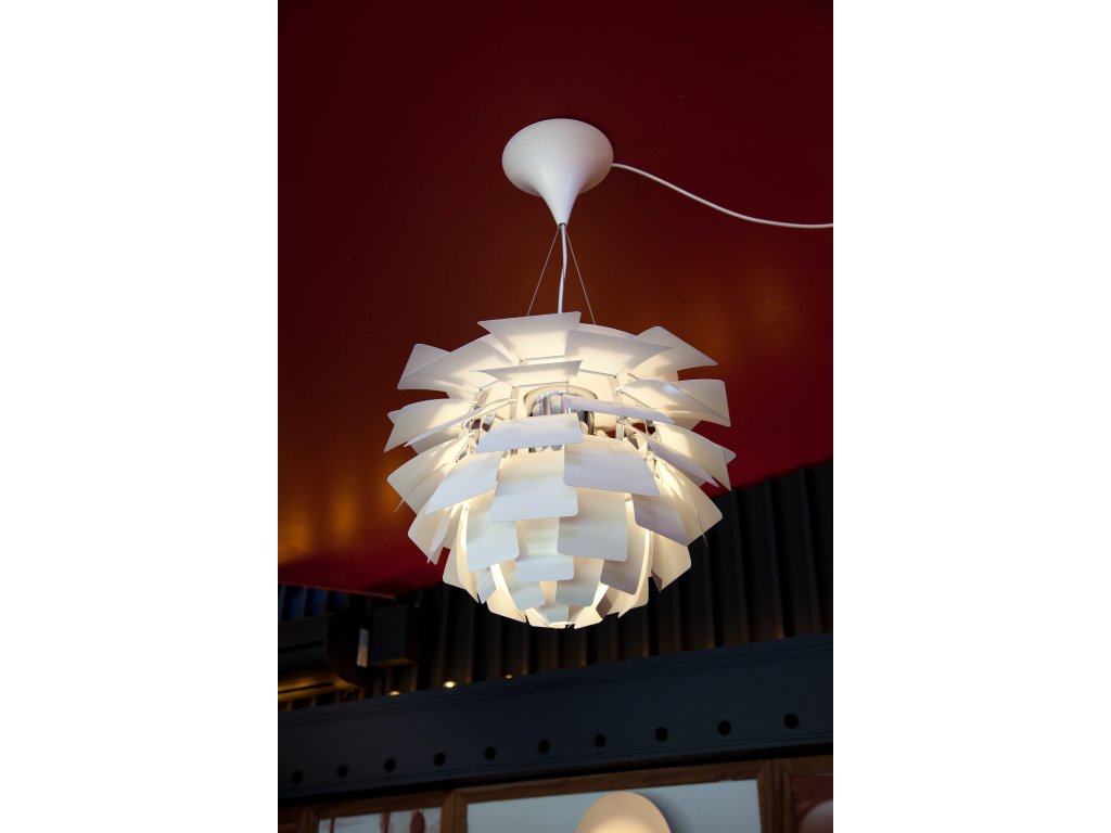 Skvost v oblasti světleného designu, to je PH Artichoke od Louis Poulsen. Závěsné svítidlo má precizně navržený systém 72 ručně kladených listů, který elegantně skrývá světelný zdroj tak, že není viditelný z žádného úhlu, a současně vytváří měkké, neoslňující světlo, jež dodává prostoru jedinečnou atmosféru. I toto bílé provedení najdete v mnoha veřejných prostorech při objevování kodaňské architektury, stejně tak v řadě skandinávských domácností. Je to prostě láska.