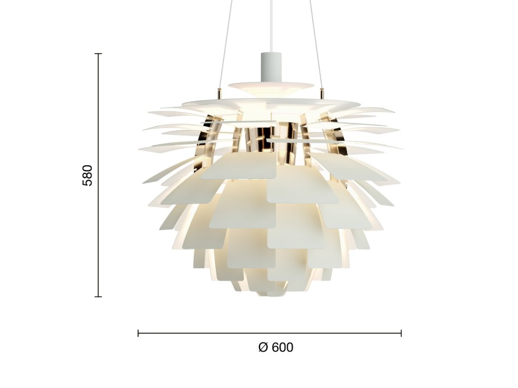 Světelný koncept závěsného svítidla PH Artichoke je postaven na Henningsenově jedinečné konstrukci vícevrstvých stínidel. Každá z 12 po sobě jdoucích řad obsahuje 6 ručně namontovaných ocelových listů, tedy celkem 72, které směřují většinu světla dolů. Pouze horní svítidlo ve tvaru trumpety jemně rozptyluje světlo do stran. Rozsvícené svítidlo tak nejen elegantně osvětluje samo sebe, ale také prostor kolem, a to bez nežádoucího oslnění. Barvy vnitřního stínidla jsou pečlivě voleny tak, aby zlepšovaly kvalitu světla a zvýrazňovaly přirozené barvy osvětlovaných předmětů, čímž přispívají k harmonické atmosféře.