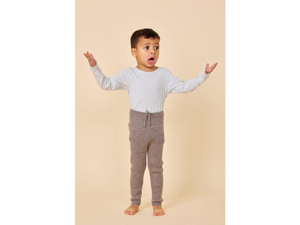 Pohodlné dětské legíny z merino vlny v hnědé barvě od Copenhagen Colors. Legíny jsou ušité z pevnějšího úpletu, proto je lze nosit i samostatně jako základní vrstvu. V chladném období tvoří skvělou spodní vrstvu pod teplejší oblečení. Využít se mimo jiné dají i jako spodní díl pyžama.