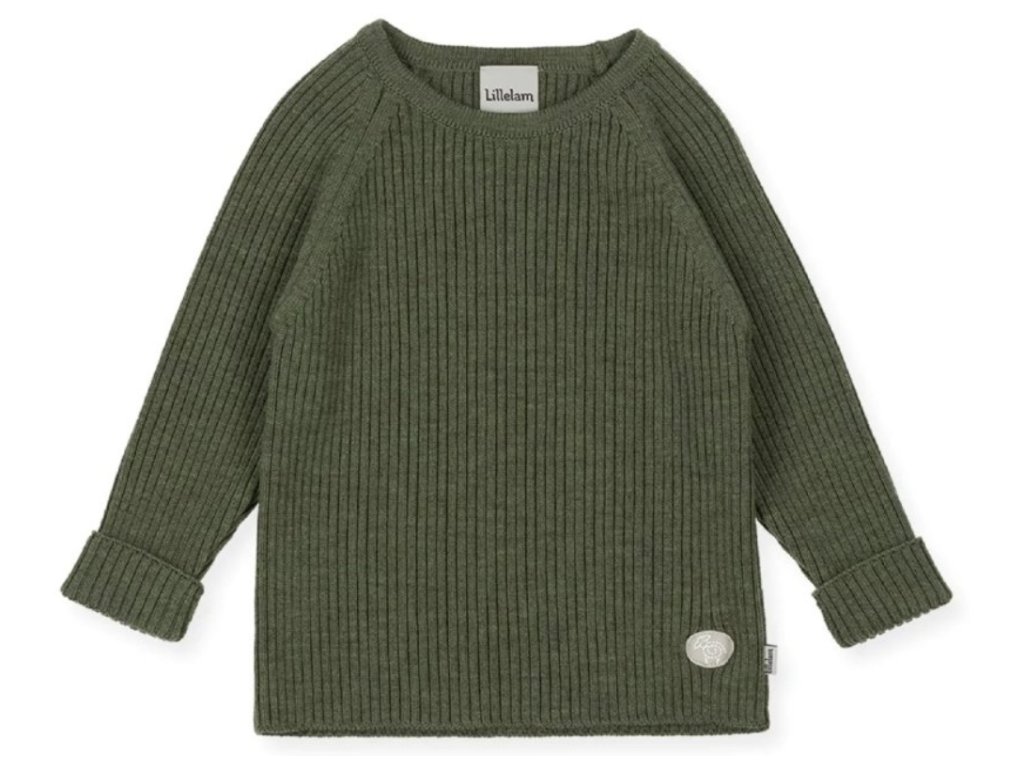 Dětský merino svetr Classic Rib "Olive" Lillelam