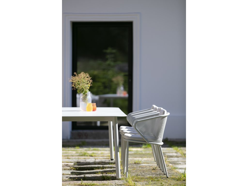 Židle je vyrobená v Opavě z těch nejkvalitnějších evropských materiálů. Jejím základem je práškově lakovaná nerezová ocel, která vyniká vysokou pevností a odolností. Nevadí ji ostré slunce, slaná nebo chlorovaná voda ani mráz. Proto má židle veliké ambice vás přežít. Venku ji můžete mít celoročně, dokonce i když hustě prší nebo sněží.