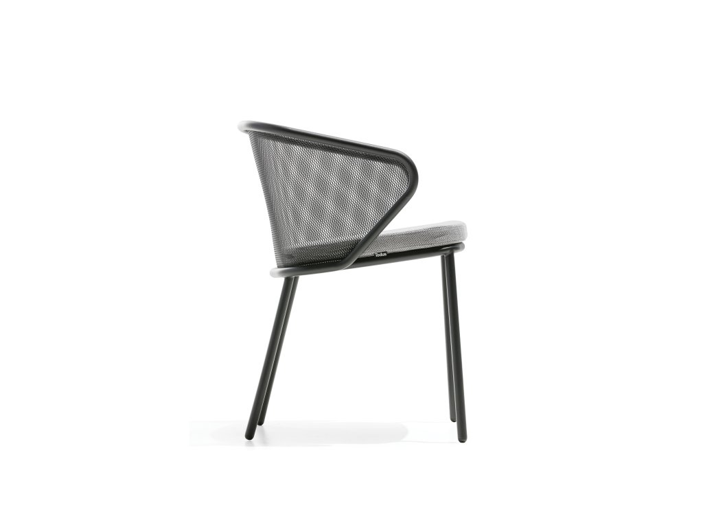 Židle z kolekce venkovního nábytku Condor od značky Todus je navržena s důrazem na moderní design a pohodlí. Její měkký, pohodlně polstrovaný sedák spolu s loketními opěrkami poskytuje příjemnou oporu a komfort při sezení. Vzdušné drátěné opěradlo pak celku dodává lehkost a nadčasově elegantní výraz.