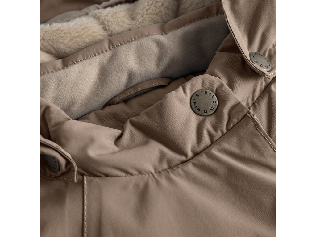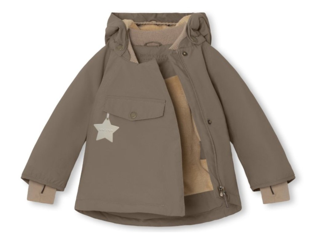 Klasická MINI A TURE zimní bunda pro děti je 100% větru a voděodolná, prodyšná a dostatečně teplá pro velmi chladné zimní dny. Rozepíná se zepředu skrytým šikmým zipem. Roztomilá špičatá kapuce je odnímatelná a lze ji utěsnit kolem hlavy pomocí elastické gumičky, aby dovnitř nefoukal vítr. Uvnitř bundy lze nastavit pas. Sněhové manžety na zápěstí jsou vyrobeny tak, aby bylo možné mít palce venku. Velikost 80 a 86 má žebrování kolem krku a větší velikosti mají klasický límec. Na rukávech jsou poutka pro připevnění palčáků a rukavic od MINI A TURE. V přední kapse je ikonická reflexní hvězda MINI A TURE.