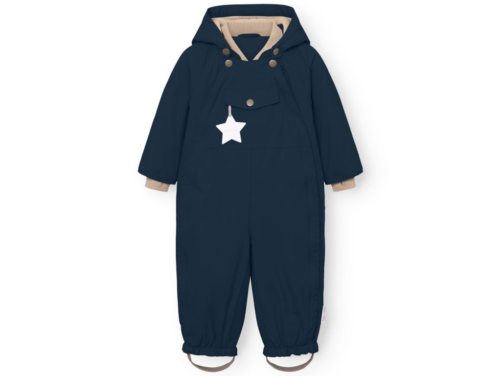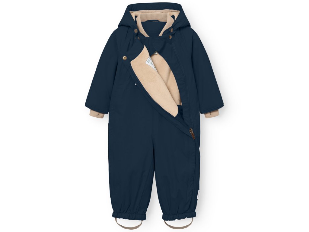 Tato dětská MINI A TURE zimní kombinéza je 100% větru a voděodolná, prodyšná a dostatečně teplá pro velmi chladné zimní dny. Otevírá se vpředu dvěma skrytými šikmými zipy. Kapuce je odnímatelná a lze ji okolo hlavy utěsnit pomocí elastické gumičky tak, aby dovnitř nefoukal vítr. Uvnitř kombinézy lze nastavit pas. Sněhové manžety na zápěstí jsou vyrobeny tak, aby bylo možné mít palce venku. Velikost 80 a 86 má žebrování kolem krku a větší velikosti mají klasický límec. Na rukávech jsou poutka pro připevnění palčáků a rukavic od MINI A TURE. V přední kapse je ikonická reflexní hvězda MINI A TURE.