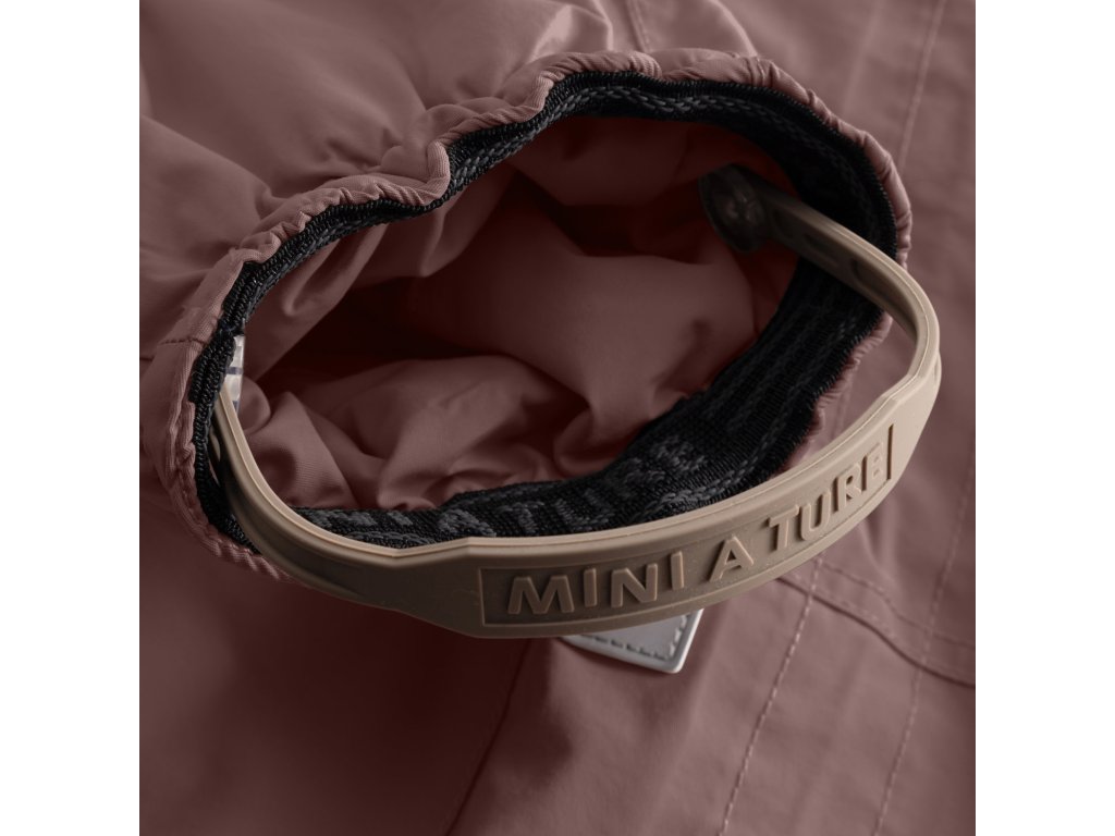 Tato dětská MINI A TURE zimní kombinéza je 100% větru a voděodolná, prodyšná a dostatečně teplá pro velmi chladné zimní dny. Otevírá se vpředu dvěma skrytými šikmými zipy. Kapuce je odnímatelná a lze ji okolo hlavy utěsnit pomocí elastické gumičky tak, aby dovnitř nefoukal vítr. Uvnitř kombinézy lze nastavit pas. Sněhové manžety na zápěstí jsou vyrobeny tak, aby bylo možné mít palce venku. Velikost 80 a 86 má žebrování kolem krku a větší velikosti mají klasický límec. Na rukávech jsou poutka pro připevnění palčáků a rukavic od MINI A TURE. V přední kapse je ikonická reflexní hvězda MINI A TURE.