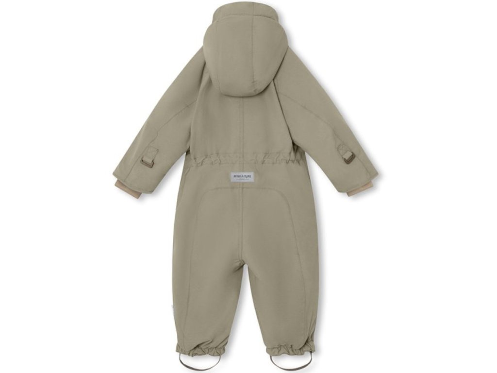 Tato dětská MINI A TURE zimní kombinéza je 100% větru a voděodolná, prodyšná a dostatečně teplá pro velmi chladné zimní dny. Otevírá se vpředu dvěma skrytými šikmými zipy. Kapuce je odnímatelná a lze ji okolo hlavy utěsnit pomocí elastické gumičky tak, aby dovnitř nefoukal vítr. Uvnitř kombinézy lze nastavit pas. Sněhové manžety na zápěstí jsou vyrobeny tak, aby bylo možné mít palce venku. Velikost 80 a 86 má žebrování kolem krku a větší velikosti mají klasický límec. Na rukávech jsou poutka pro připevnění palčáků a rukavic od MINI A TURE. V přední kapse je ikonická reflexní hvězda MINI A TURE.